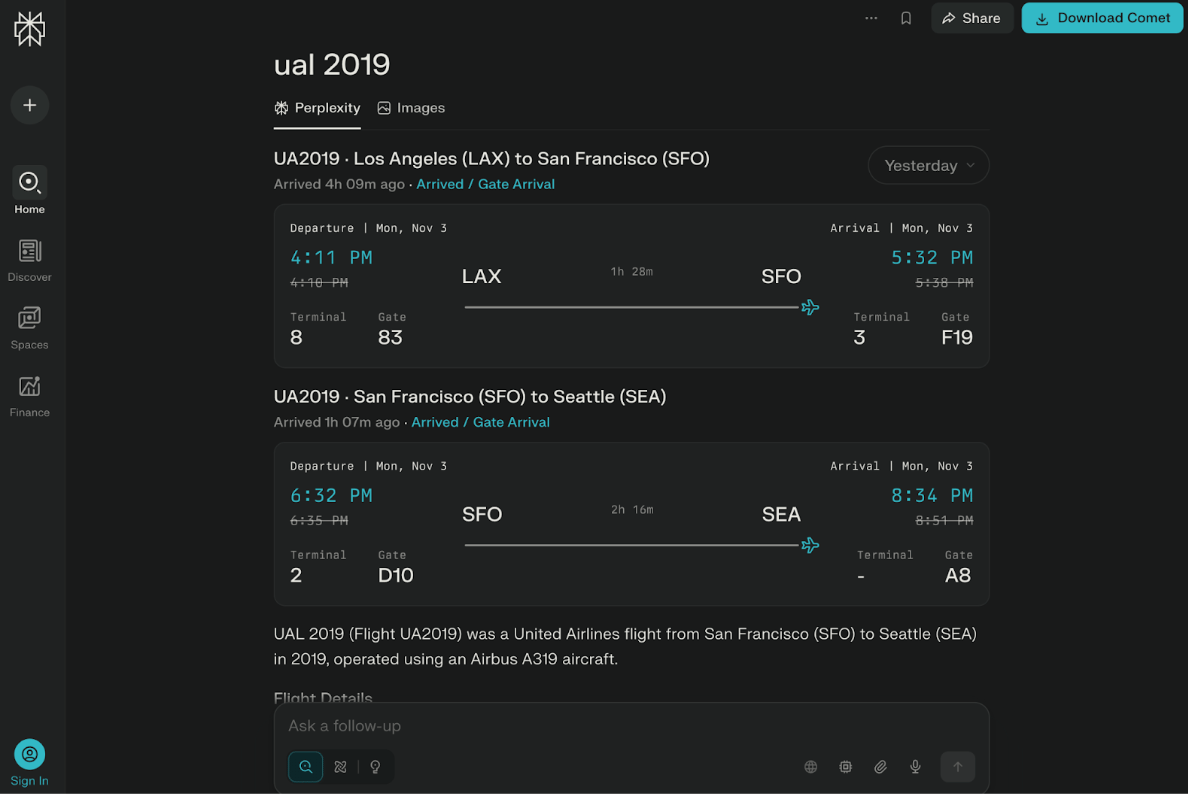 Perplexity adds Real-Time Flight Status Tracking